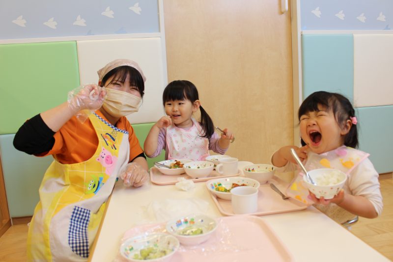 いちご組さんも、卒園式が終わり、公園で遊んだあと給食を食べました。ほっこりした姿ににっこり![]()