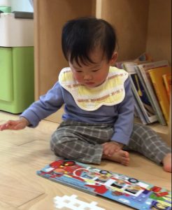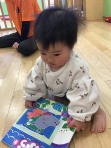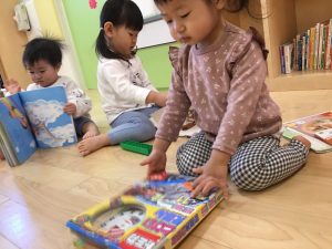 自由遊びでは、玩具で遊んでいる時でも絵本が気になるようで