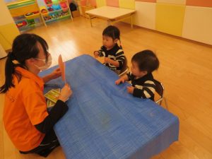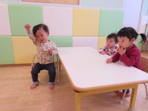 お友だちが全員登園すると、朝の会や朝のおやつです