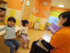 みんな揃ったので、わいわいと絵本を見ている写真がこちらです