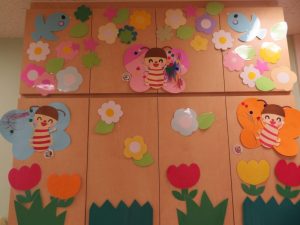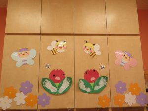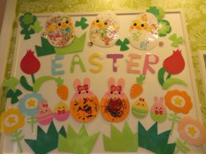 じゃ~んイースター壁面です???玄関が、みんなの作品で華やかになりました