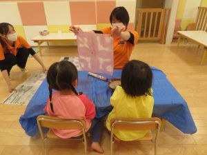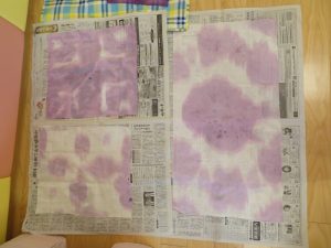 キッチンペーパーや布などに染めて、大盛り上がりで終わりました