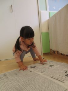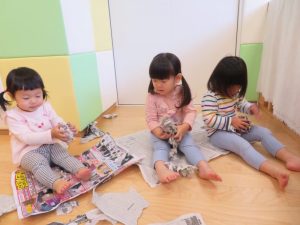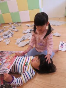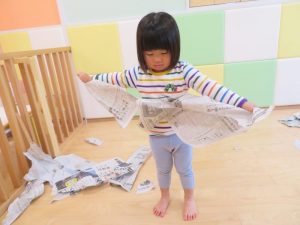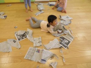 新聞遊びでは、新聞を広げてなにを作ろう![]()