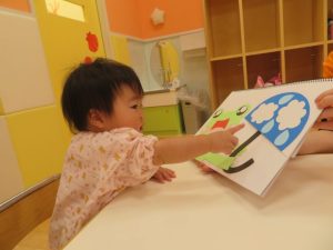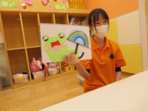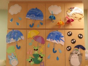 製作を始める前に、かえるちゃんの傘のお話しを見ました![]()