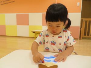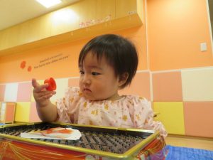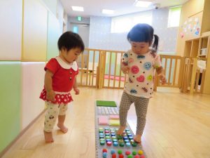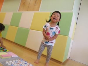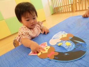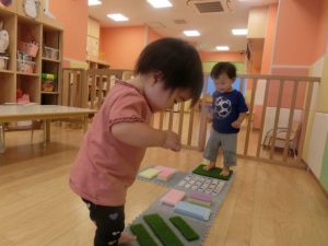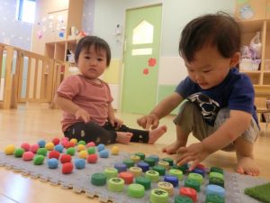 暑い日が続いて、なかなか外に出られずお部屋で過ごす1週間でした。お部屋の様子はというと、お部屋での活動のみでしたが、そんなことはお構いなしで、様々な玩具に触れて体を動かしたり、机上の遊びで集中して遊んだりと楽しむ姿がたくさんありました