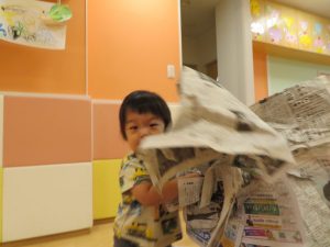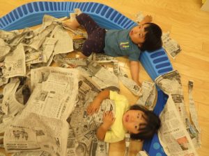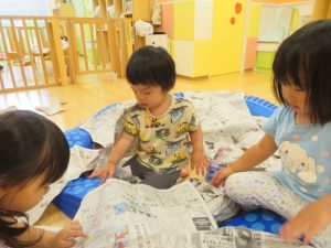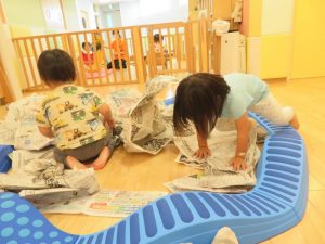 りんご組さんは、新聞紙遊びを楽しまれていました