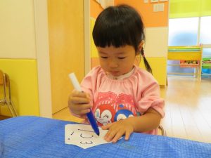 体を動かして遊んだあとは、机上の遊びで集中して楽しまれていました