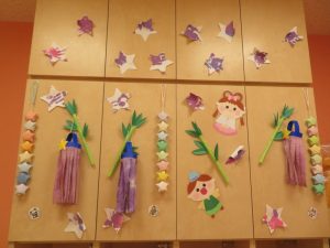 いちご組さんりんご組さん、みんなの作品が玄関に集まりましたとっても賑やかになりましたお願い事、叶いますように