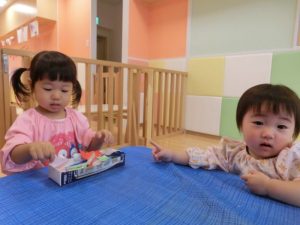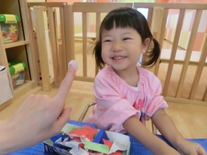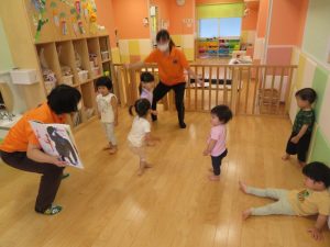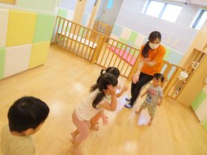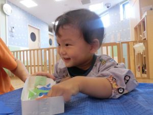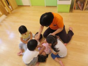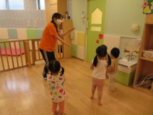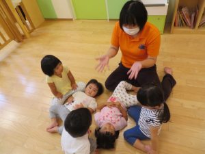 保育士やお友だちとの触れ合い遊びの「きゅうりができた」も大好評です![]()