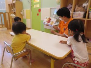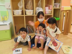 子どもたちが大好きな園長先生と絵本を見たり~![]()