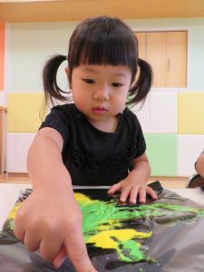 袋の上からフィンガーペイントを楽しんでみたり~![]()