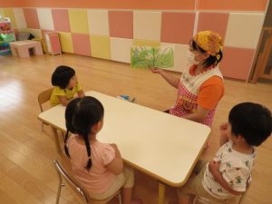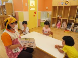 絵本の感想を友だち同士や保育士と言い合って楽しみました。