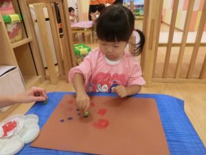 「絵の具をつけて、ペタン