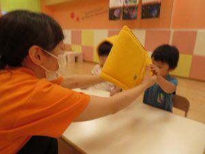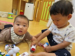 いちご組さんのお兄さんと一緒に過ごして、思わず顔を見合わせて