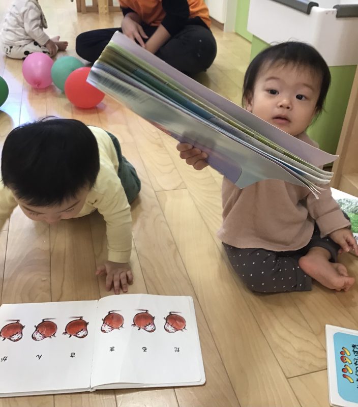 今月から入園したもも組のお友だちも絵本に興味を持ってくれています😊