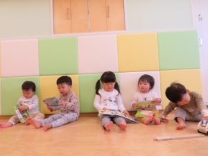 お気に入りの絵本を見るときは、いつもお友だちの側で