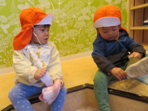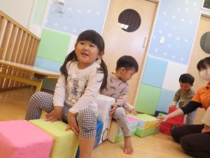 触れ合い遊び楽しいよお友だちと横になってごろ〜んってして、床暖の暖かさを感じたり、歌に合わせて触れ合い遊びをしてもらってご満悦な様子でした