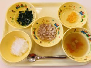いつもの味噌汁とは違うのっぺい汁は具沢山で食べるのが楽しいですね。ニコニコと元気よくいっぱい食べている姿を見ると元気がもらえます♪