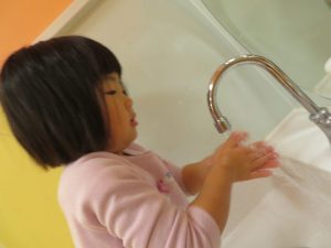 お散歩の帰りは、手洗いも忘れずに![]()