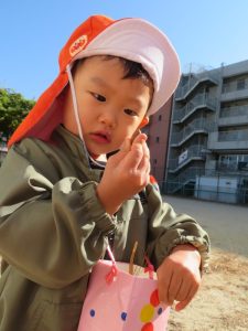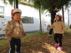 どんぐり拾いや落ち葉など秋の自然にたくさん触れてお友だちとのやりとりを楽しみました![]()