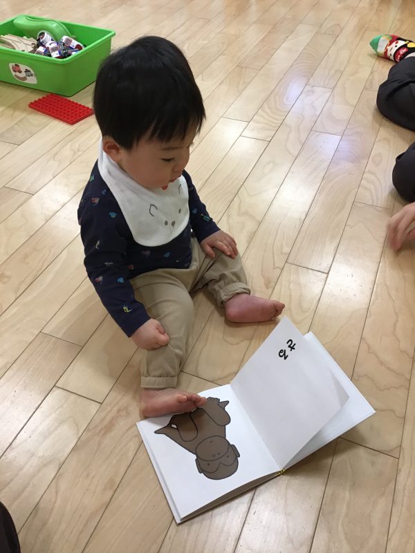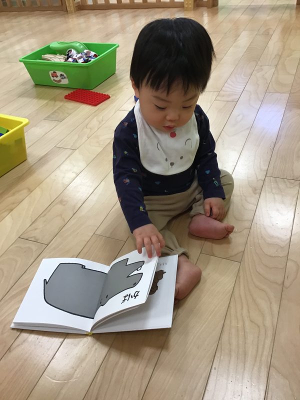 今回は0歳クラスの園児が黙々と絵本を見ている姿可愛かったのでそれを紹介します。