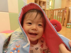 はじめは、お家の人と離れるのが悲しくて新しい保育園にドキドキとされたお顔でしたが、日を増すごとに保育園に慣れてお友だちもできて、とっても楽しそうです