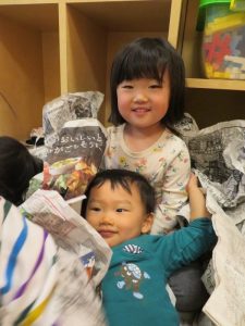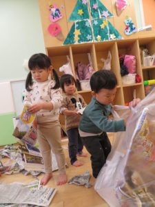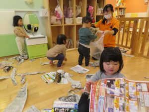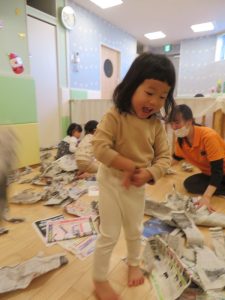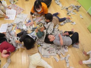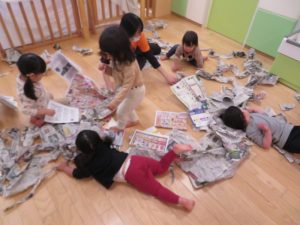 と新聞紙遊びです![]()