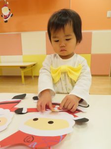 日が増し、保育時間が長くなると不安になったみたいで、ドキドキしたお顔になっておられましたが、アンパンマンの曲を流すと、ぱっと気持ちを切り替えて「アンパーンマーン