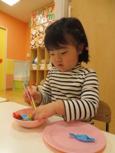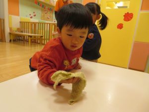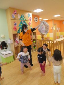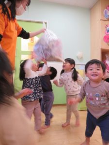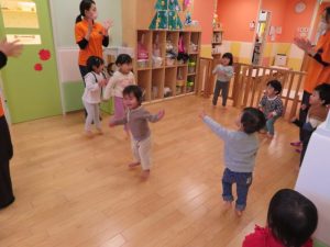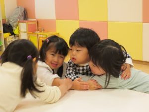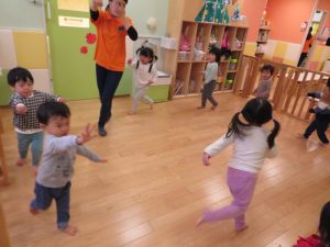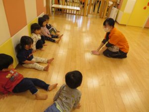 続きまして、朝のカリキュラムで触れ合い遊びをした後は、