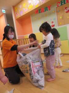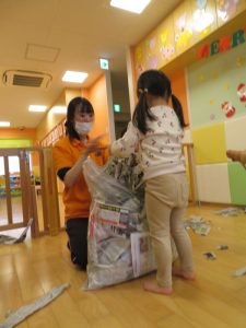 みんなで片付けた新聞紙が袋に入ってこんなに大きくなったよ![]()