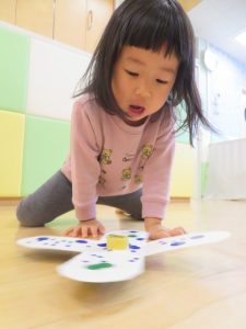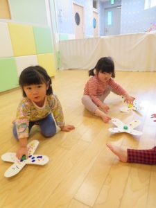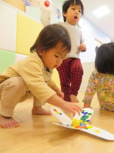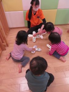 1,2歳児さんは指先の使い方や「せーの」で回すルールなども分かり始め遊びの幅が広がってきているように思います。