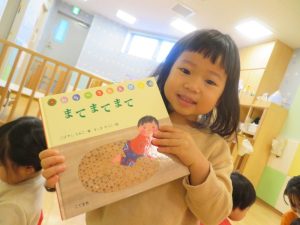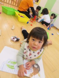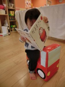 みんなで絵本を楽しんだ後は、自由遊びでお友だちとまったりしながら、絵本を選んで自分時間を謳歌されるお友だちでした