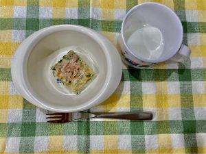 (写真は普通食になります。年齢によって盛り付け量を変えて、提供しています。)