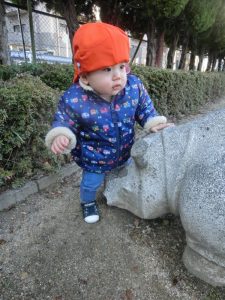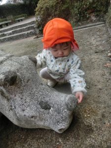 自分の興味のある方向に一生懸命歩いて行き、何やら見つけた様子![]()