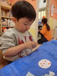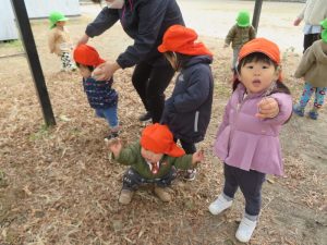 「これは、葉っぱだよ」2歳児クラスのお友だちも教えてくれていました![]()