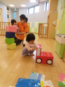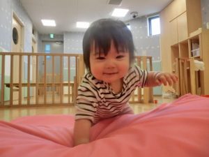 初めは、どきどき緊張したお顔でしたが、徐々に保育園生活に慣れて、にっこり笑顔が増えてきました