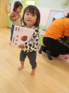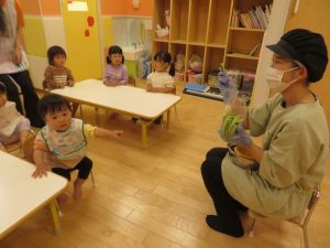 まず、うすい豆の絵本を、、、と思いましたが、うすい豆の絵本がなかったので、そらまめくんのベッドの絵本を見て、莢の中がどうなっているのか絵を見て観察をしました![]()