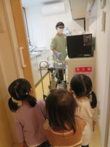 うすい豆がどうなっているのか、気になって気になって、給食室の方をチラチラと見ておられたので、みんなで給食室を覗きにいきました![]()