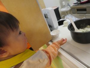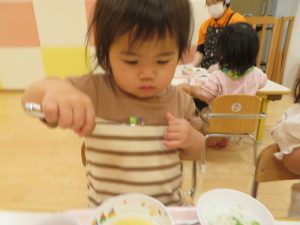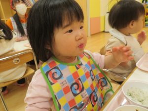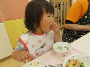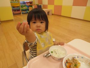 朝、莢から出したお豆が調理されて給食に出ると、真っ先に豆ご飯に手を伸ばして食べてくれました![]()