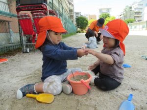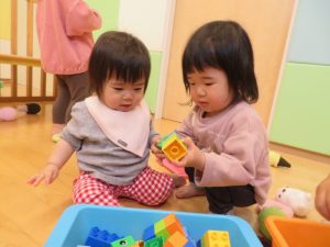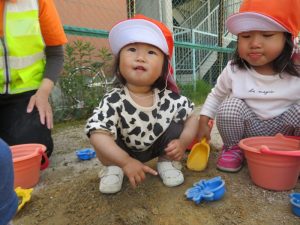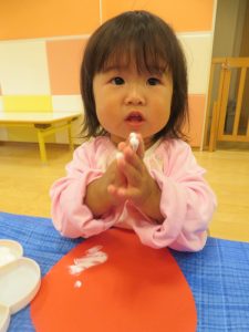 初めての保育園に、はじめはちょっぴり緊張されていましたが、初日から朝の会に参加して、お名前を呼ばれると「はい!」とお返事をとっても上手にされていました