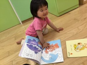 子ども達は、絵本でも雨降りの物を選んでいます![]()