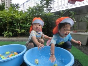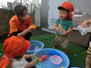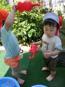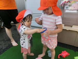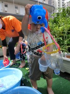 本日は、水遊びの様子をご紹介させてください![]()