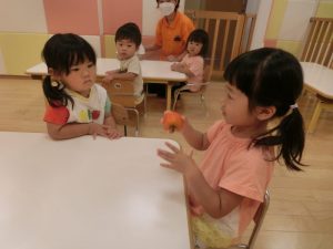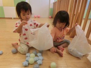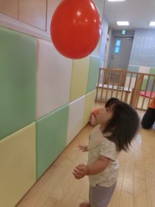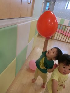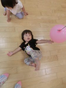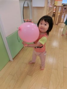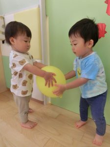 お友だちとのやりとりでは、仲良く風船を譲り合いっこ
