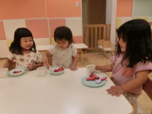 作ったものでおままごとを楽しみながらも水分補給のお茶は、ちゃっかり本物です![]()