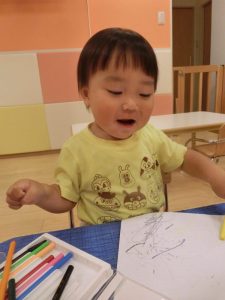 お絵描きでは、いろんな色のクレヨン使って描き描き![]()