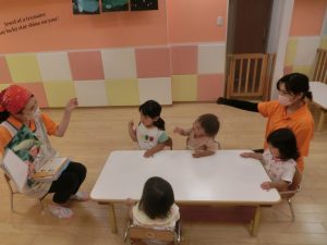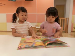 保育士とのやりとりを楽しみながら、絵本に夢中です![]()