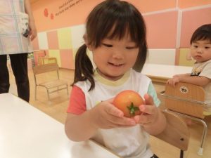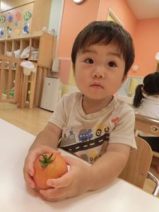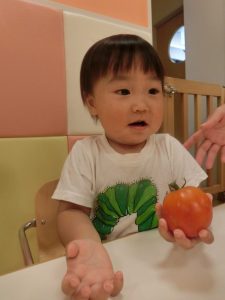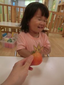 保育園の裏で育てているトマトが赤くなったので収穫しました![]()