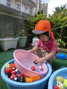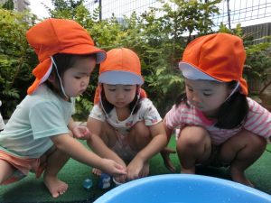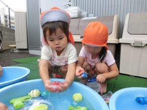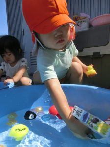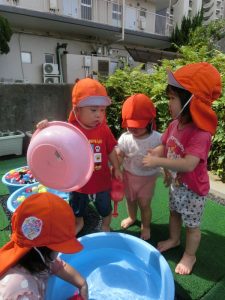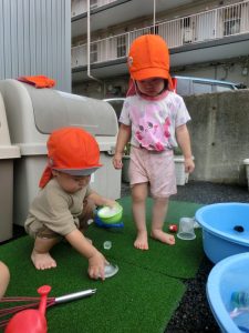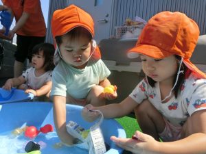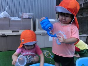 保育園でも、まだまだ水遊びをしております![]()