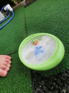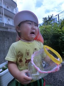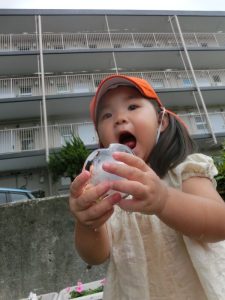 手作りおもちゃで、水のシャワ〜![]()