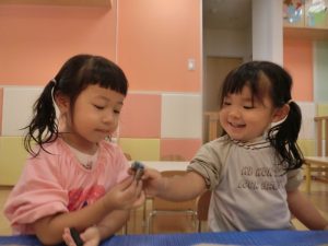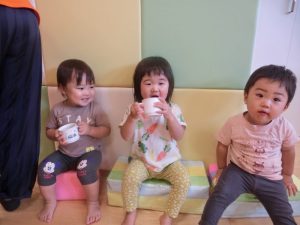 いっぱい遊んだ後のお茶休憩、お友だちと楽しい〜![]()